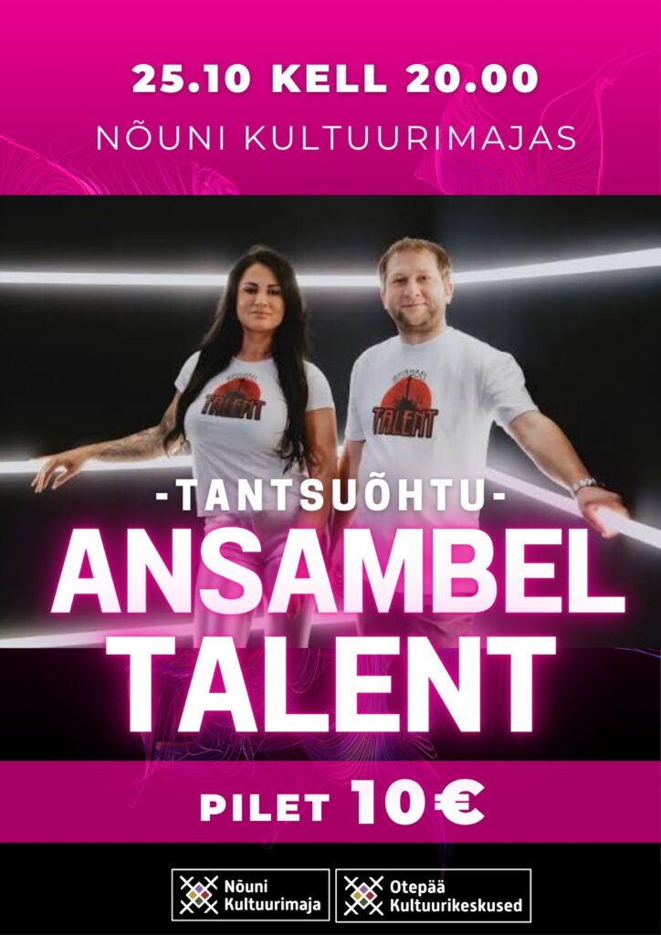 Tantsuõhtu Nõunis! Laval ansambel Talent Tule veeda üks meeleolukas sügisõhtu heas seltskonnas ja elava muusika saatel!25. oktoobril kell 20.00 vallutab Nõuni rahvamaja lava armastatud ansambel Talent, kes paneb tantsujalad liikuma nii noortel kui kogenumatel. Kuupäev: 25. oktoober Algus: kell 20.00 Koht: Nõuni kultuurimaja Piletid müügil kohapeal: 10€ Võta sõber kaasa ja tule tantsima – sügisõhtu ei pea olema […]