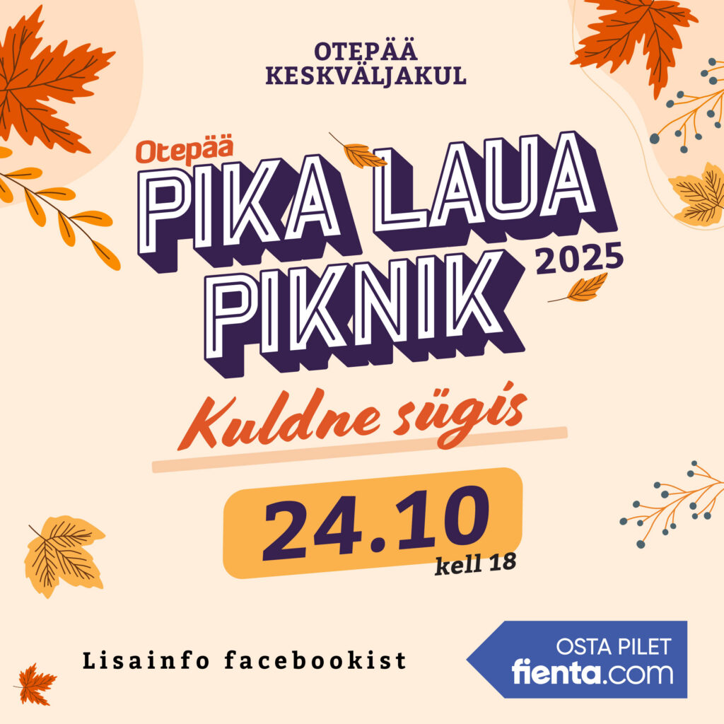 🍁 Pika Laua Piknik “Kuldne Sügis” toob kogukonna kokku Otepää keskväljakule 24. oktoobril kell 18.00 sünnib taas Otepää keskväljakul traditsiooniks saamas sündmus – Pika Laua Piknik. Seekord on teemaks “Kuldne Sügis”, mis annab osalejatele võimaluse kaunistada oma lauake sügiseselt rikkaliku ja loomingulise käekirjaga. 🏆 Õhtu jooksul hinnatakse laudade ilu ja omapära – kolm kaunimat ja […]