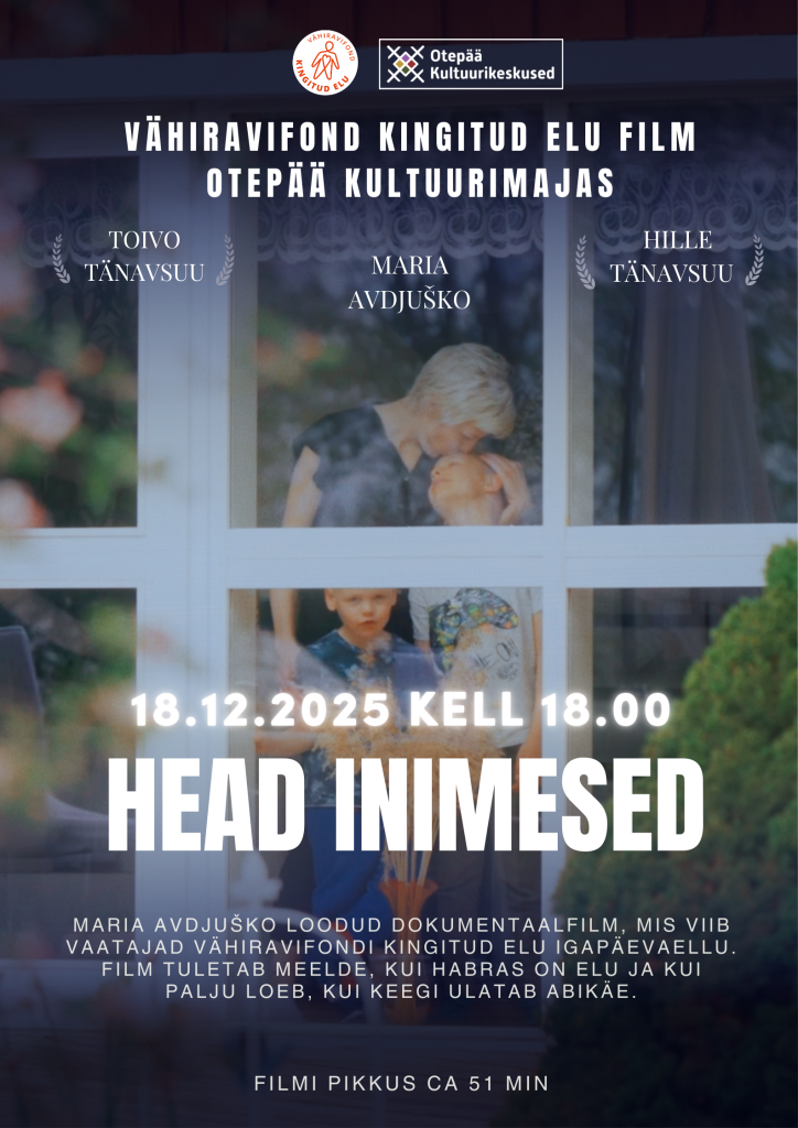 🎞️ Film “HEAD INIMESED” (Pikkus ca 51 min) Maria Avdjuško loodud dokumentaalfilm, mis viib vaatajad Vähiravifondi Kingitud Elu igapäevaellu. Film tuletab meelde, kui habras on elu ja kui palju loeb, kui keegi ulatab abikäe. Linateoses räägivad oma kogemustest väga erineva elusaatusega inimesed, kes on seotud Hille Tänavsuu nimelise vähiravifondiga Kingitud Elu. Nende hulgas on nii […]