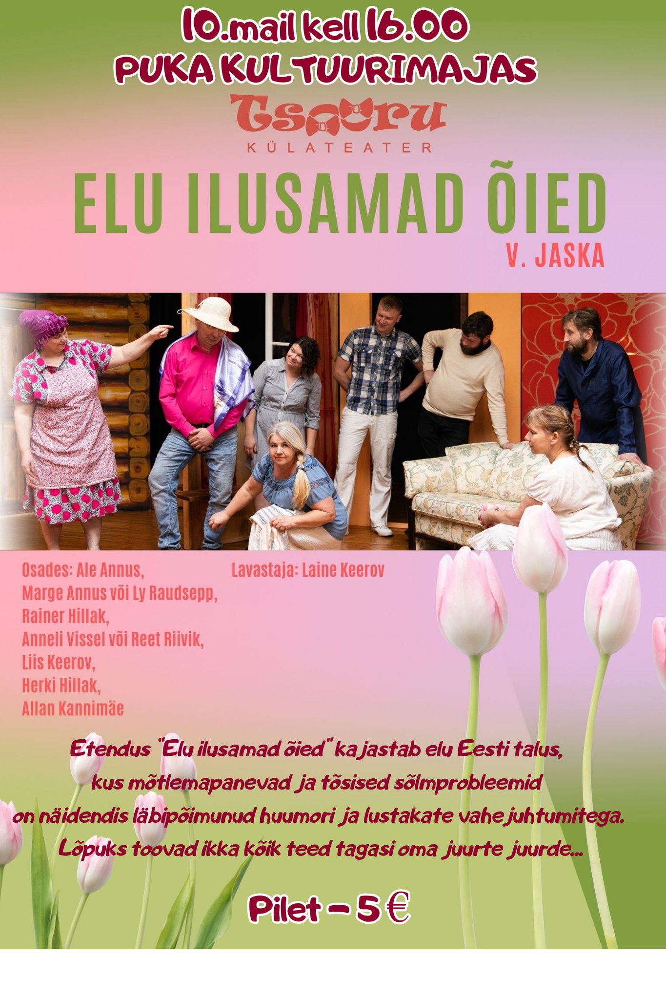 Tsooru külateatri etendus “Elu ilusamad õied” toimub Puka Kultuurimajas 10.mail kell 16.00 Puka kodukandipäeva raames.