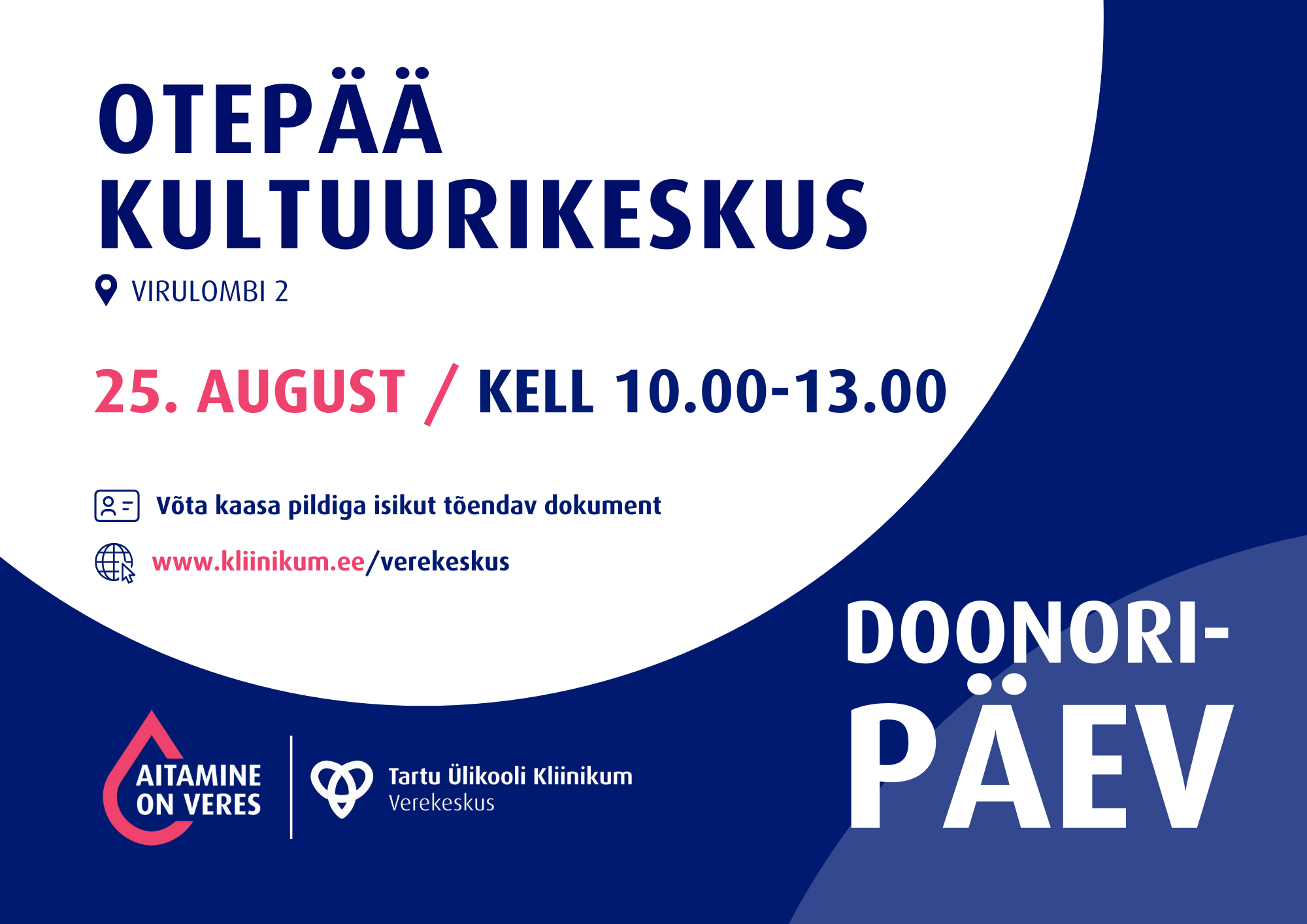 Esmaspäeval, 25. augustil kell 10.00 – 13.00 toimub Otepää kultuurimajas DOONORIPÄEV!