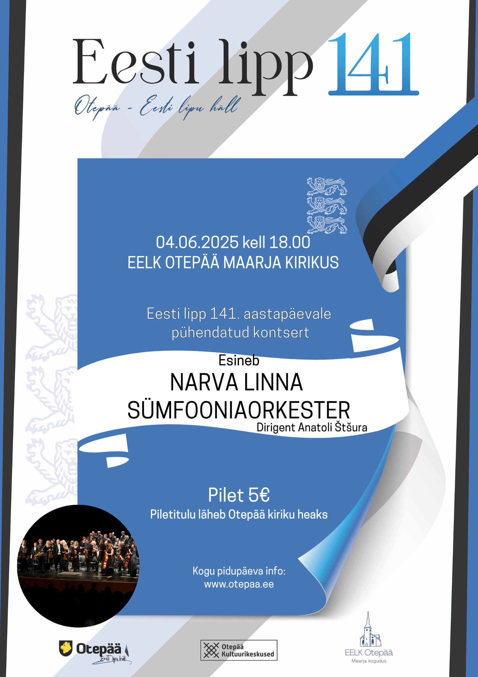 Kutsume Teid 04. juunil kell 18.00 osa saama Narva linna sümfooniaorkestri pidulikust kontserdist, mis on pühendatud Eesti lipu 141. aastapäevale.