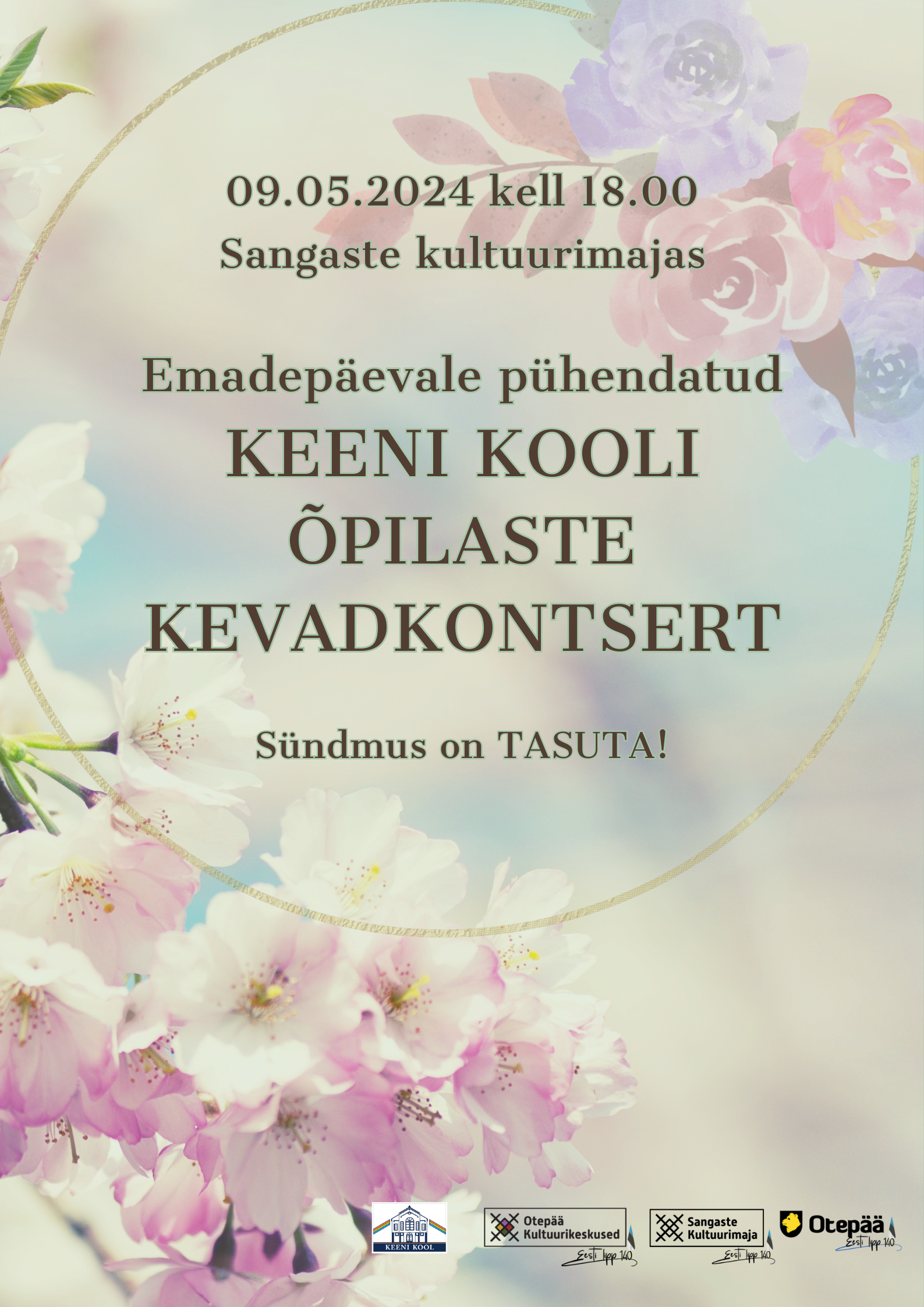 Kutsume Sind neljapäeval, 09.05.2024 kell 18.00 Sangaste kultuurimajja, kus toimub emadepäevale pühendatud Keeni kooli õpilaste KEVADKONTSERT.