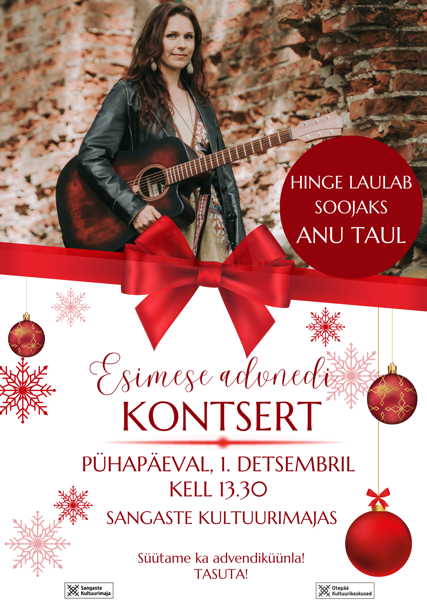 Pühapäeval, 1. detsembril kell 13.30 annab Sangaste kultuurimajas esimese advendi puhul imeilusa kontserdi armastatud ANU TAUL!