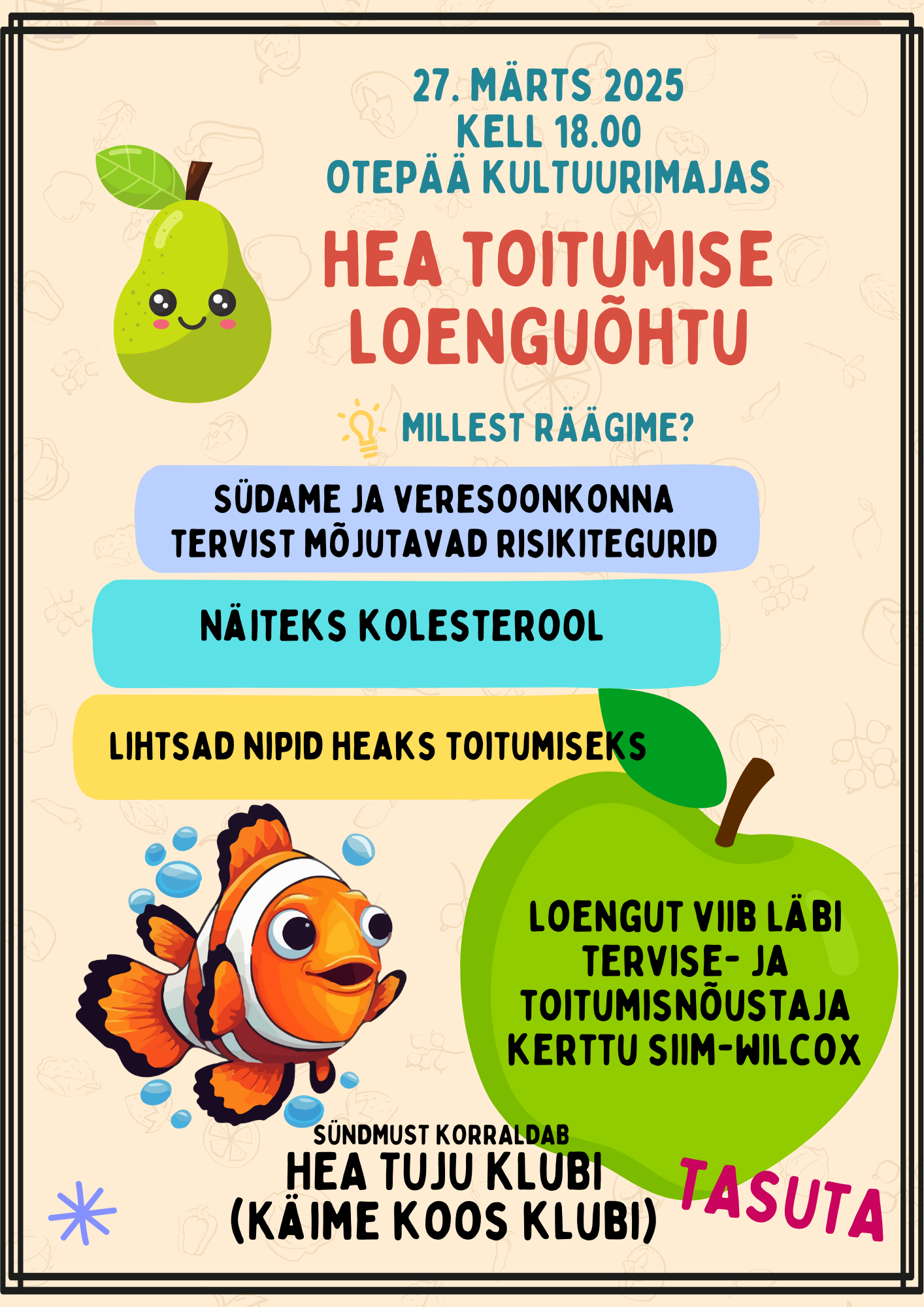 Neljapäeval, 27. märtsil Otepää kultuurimajas Hea Tuju Klubi “Hea toitumise loenguõhtu”