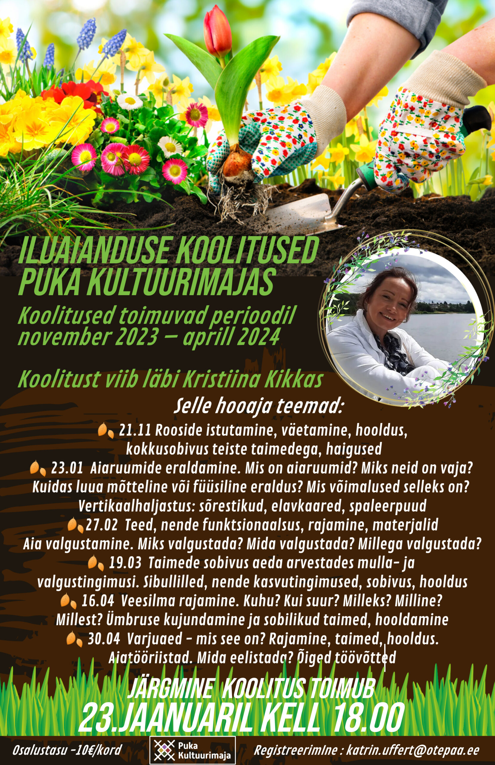 23.jaanuaril kell 18.00 Puka Kultuurimaja suures saalis ILUAIANDUSE KOOLITUS