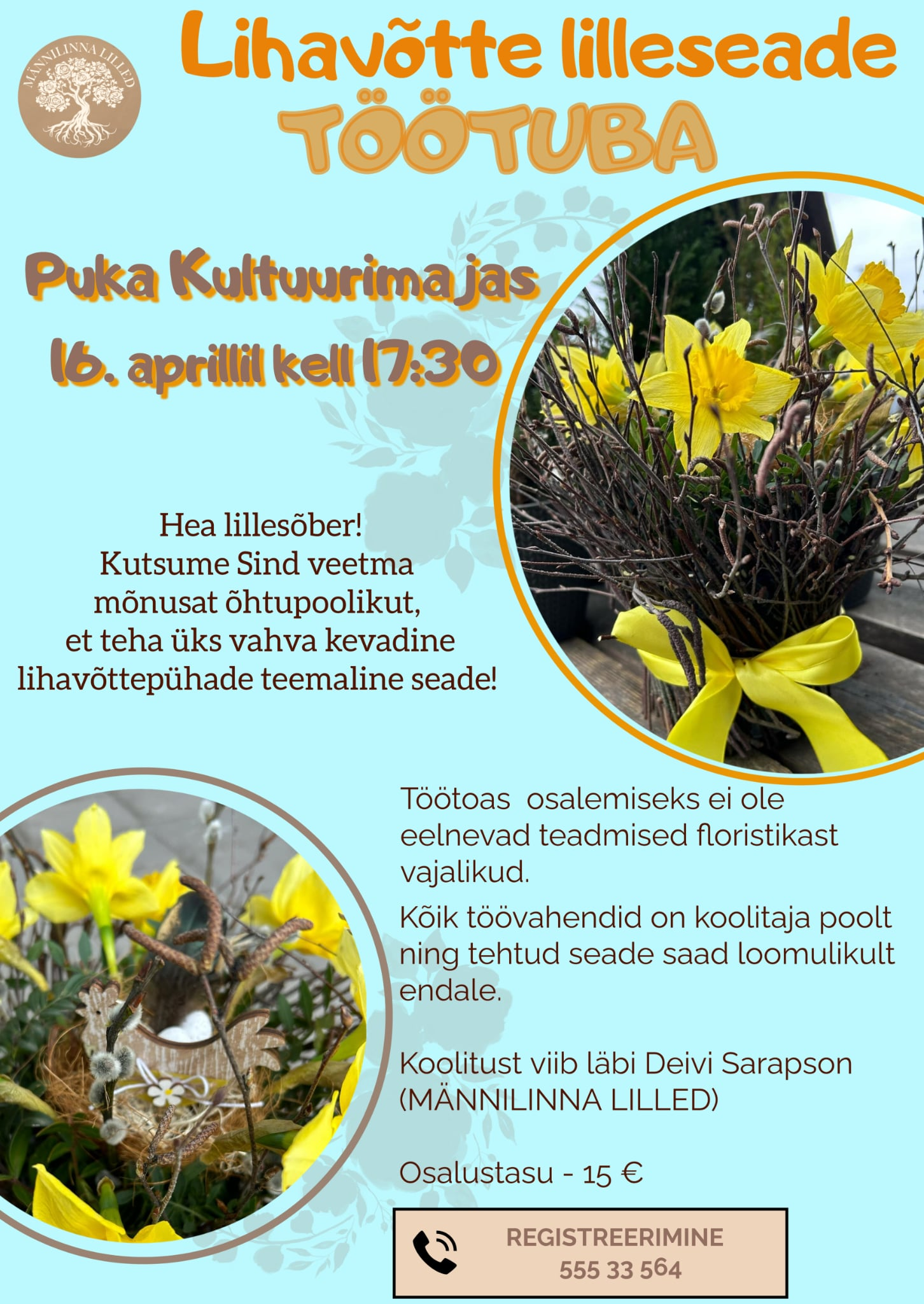 Kutsume Sind 16. aprillil kell 17.30 Puka kultuurimajja, kus saab veeta mõnusa õhtupooliku ja valmistada üks vahva kevadine lihavõttepühade teemaline seade!
