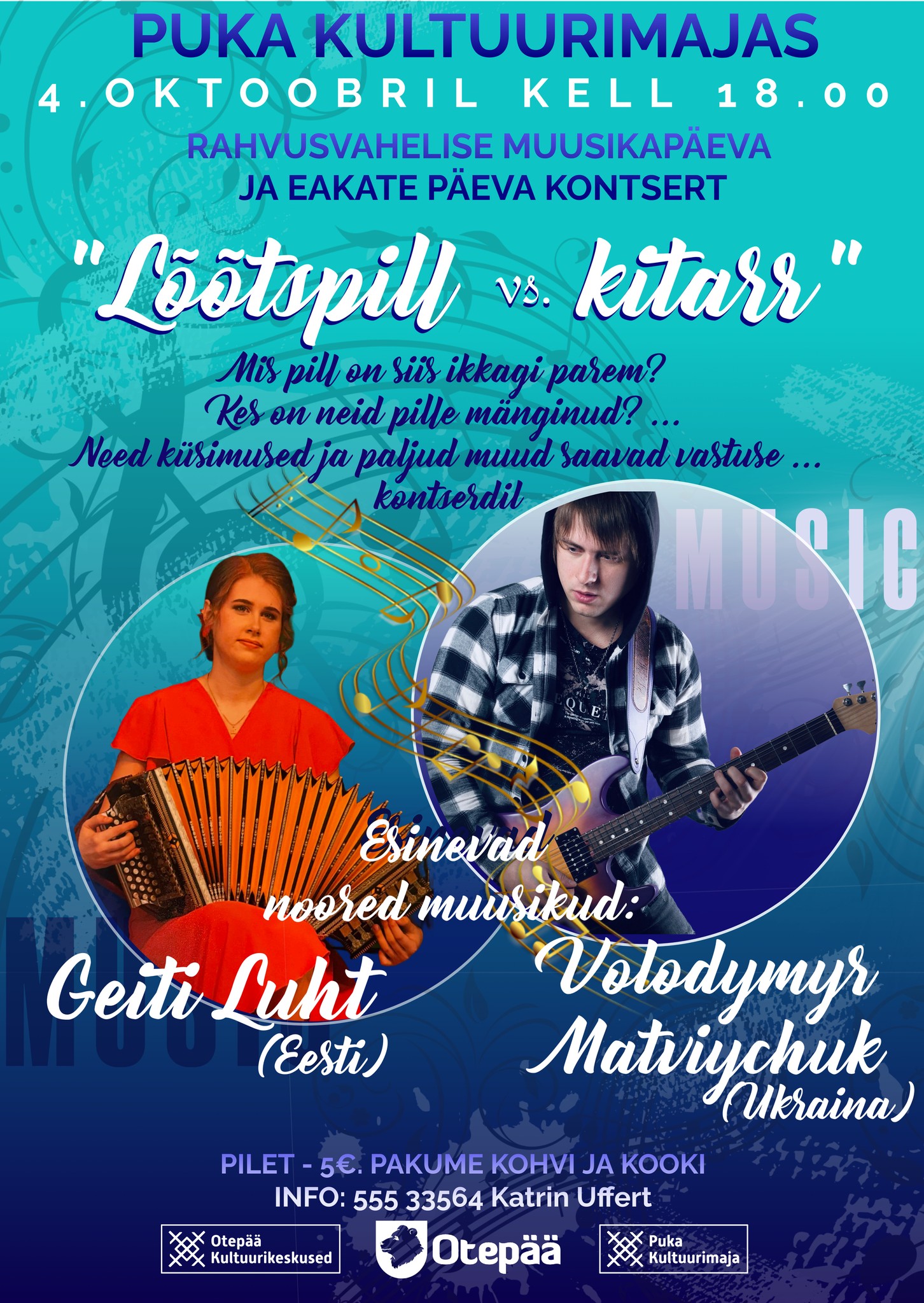 4. oktoobril kell 18.00 toimub Puka kultuurimajas ainulaadne muusikaõhtu, kus lähevad vastamisi kõige rõõmsamas mõttes lõõtspill ja kitarr.