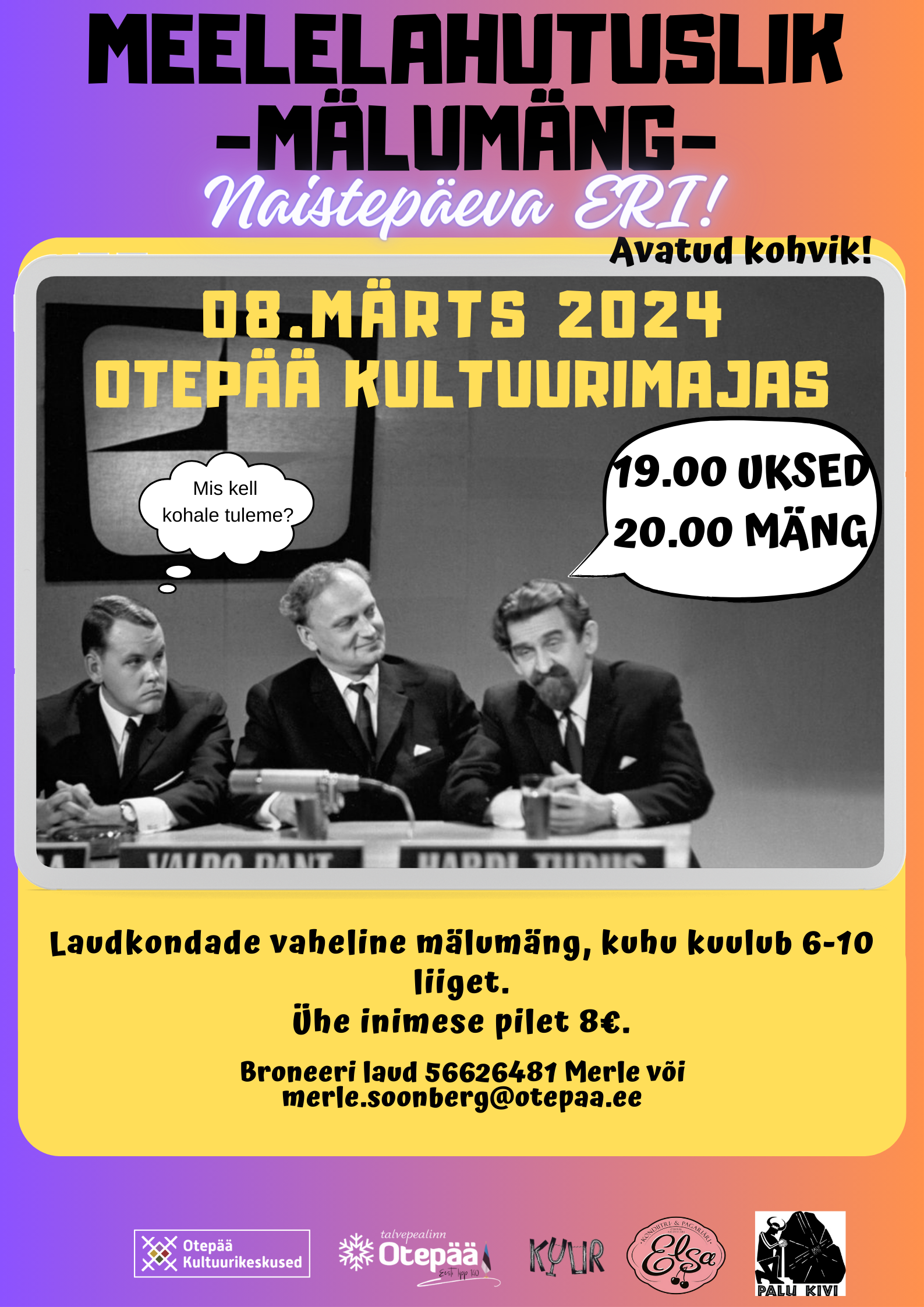 08.03.2024 toimub Otepää Kultuurimajas MEELELAHUTUSLIK MÄLUMÄNG – NAISTEPÄEVA ERI!