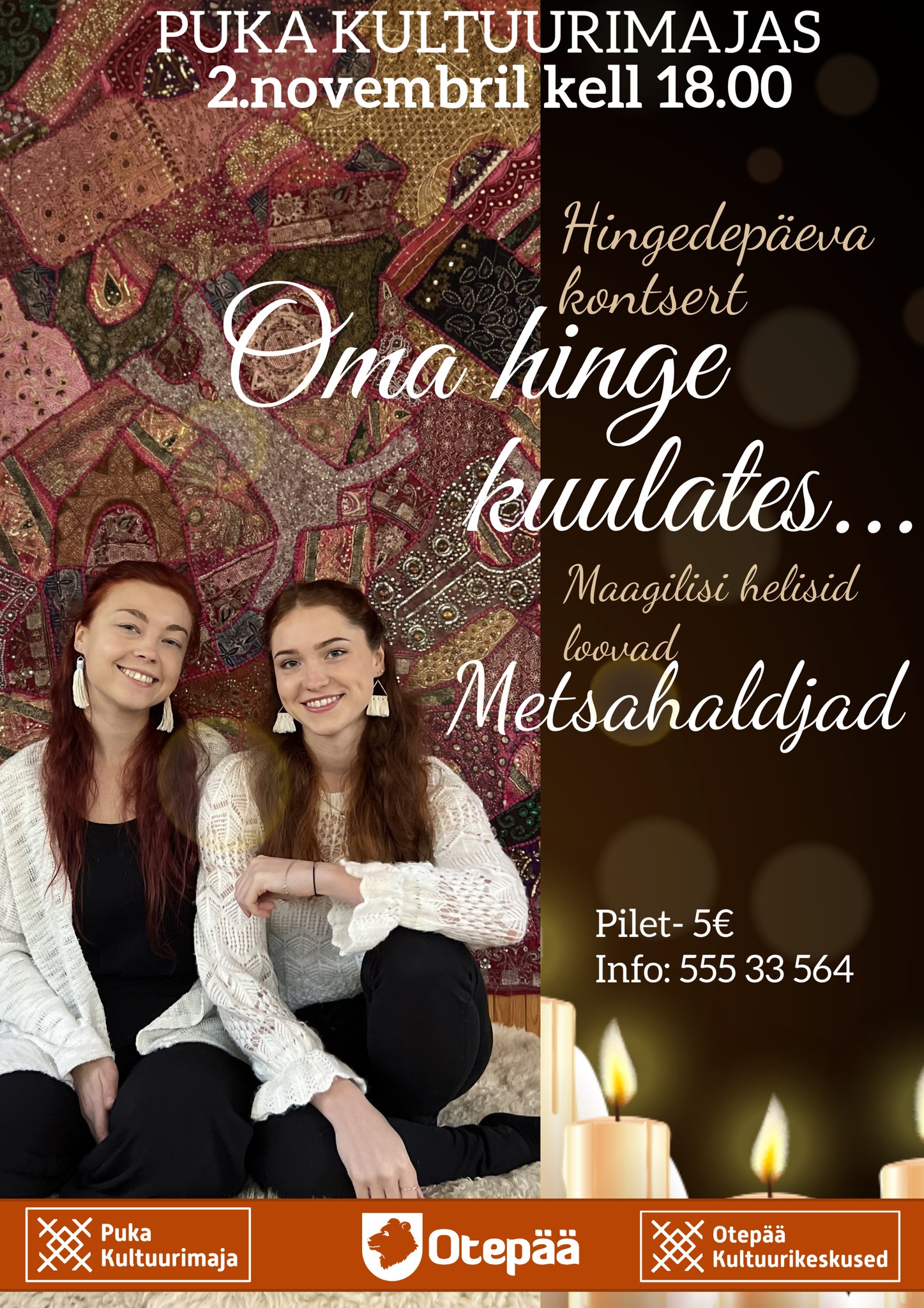 Ootame teid 2. novembril Puka Kultuurimajja, et veeta koos üks hubane ja hinge kosutav õhtu!