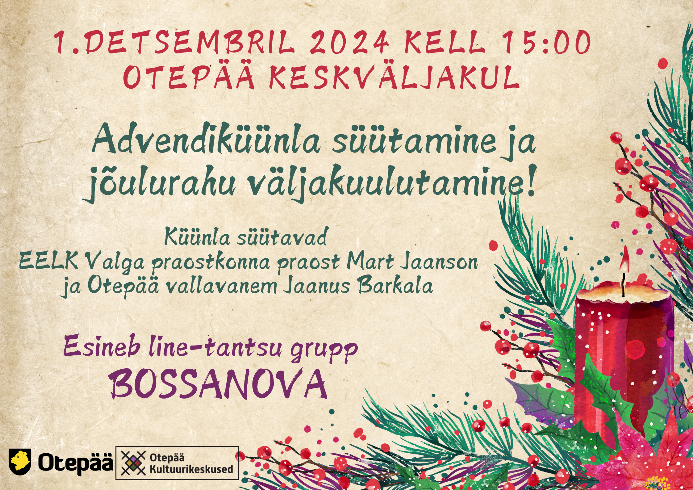 Pühapäeval, 01. detsembril kell 15.00 süütame Otepää keskväljakul advendiküünla ja kuulutame välja Jõulurahu.