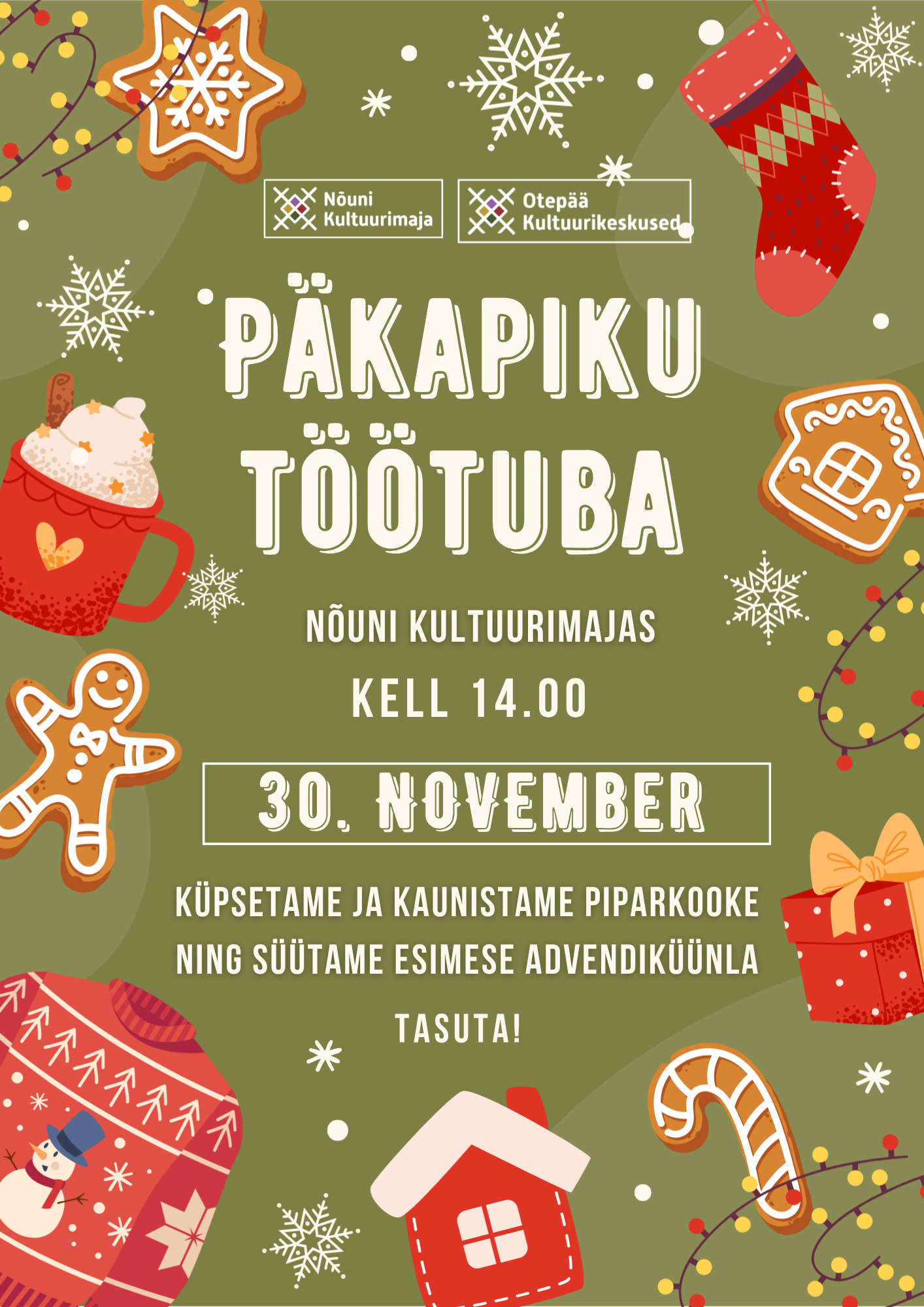 Ootame suuri ja väikseid osa saama vahvast päkapiku töötoast, kus küpsetame ja kaunistame piparkooke ning loome üheskoos mõnusa jõulumeeleolu. 🎄