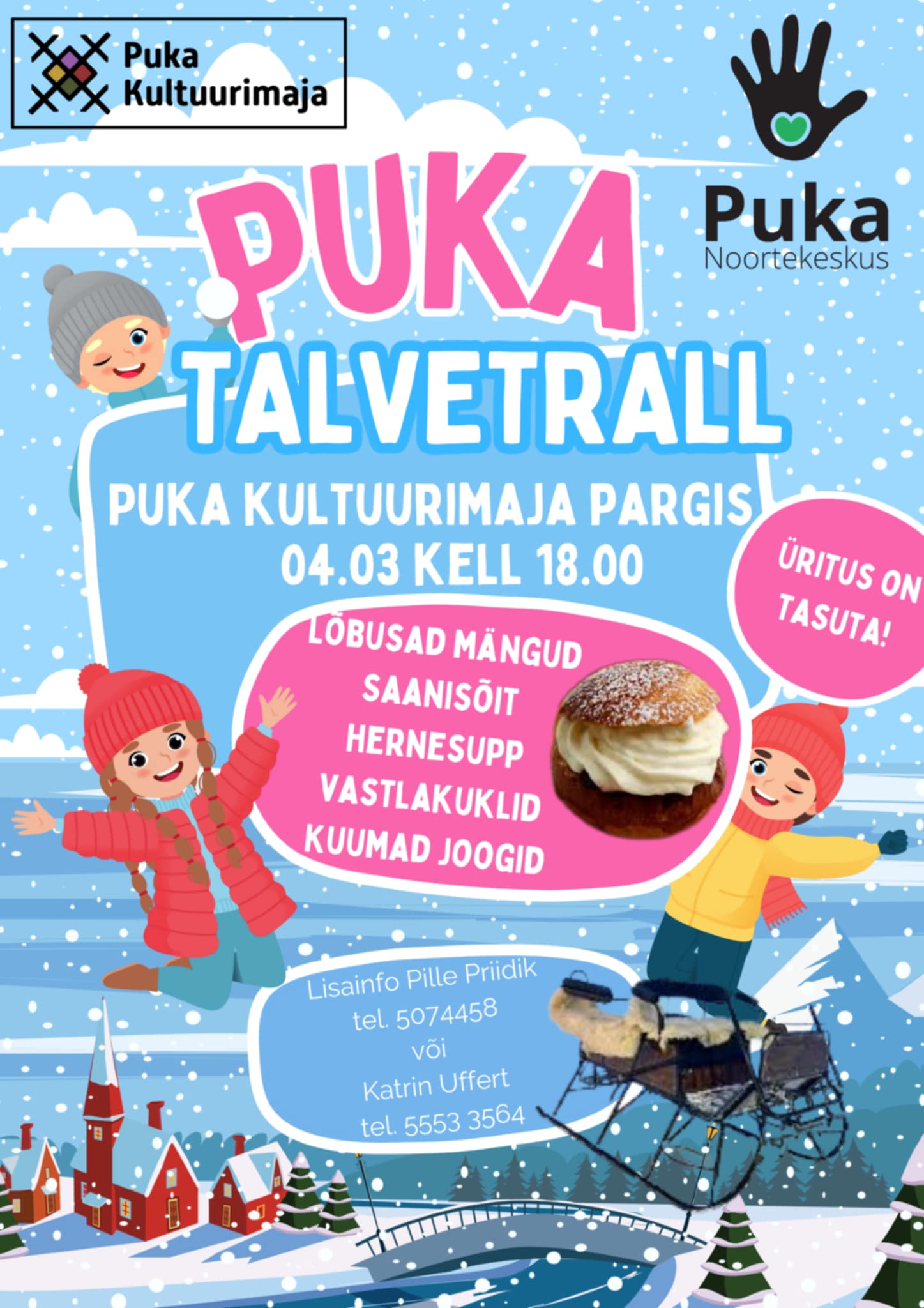 Kohtume teisipäeval, 04. märtsil kell 18.00 Puka kultuurimaja pargis, kus toimub meeleolukas PUKA TALVETRALL!