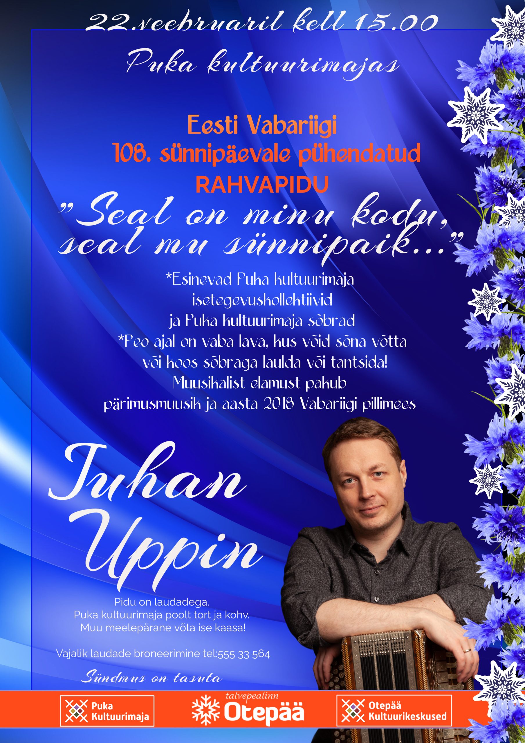 Olete oodatud Eesti Vabariigi 108. aastapäevale pühendatud RAHVAPEOLE “Seal on minu kodu, seal mu sünnipaik…”
