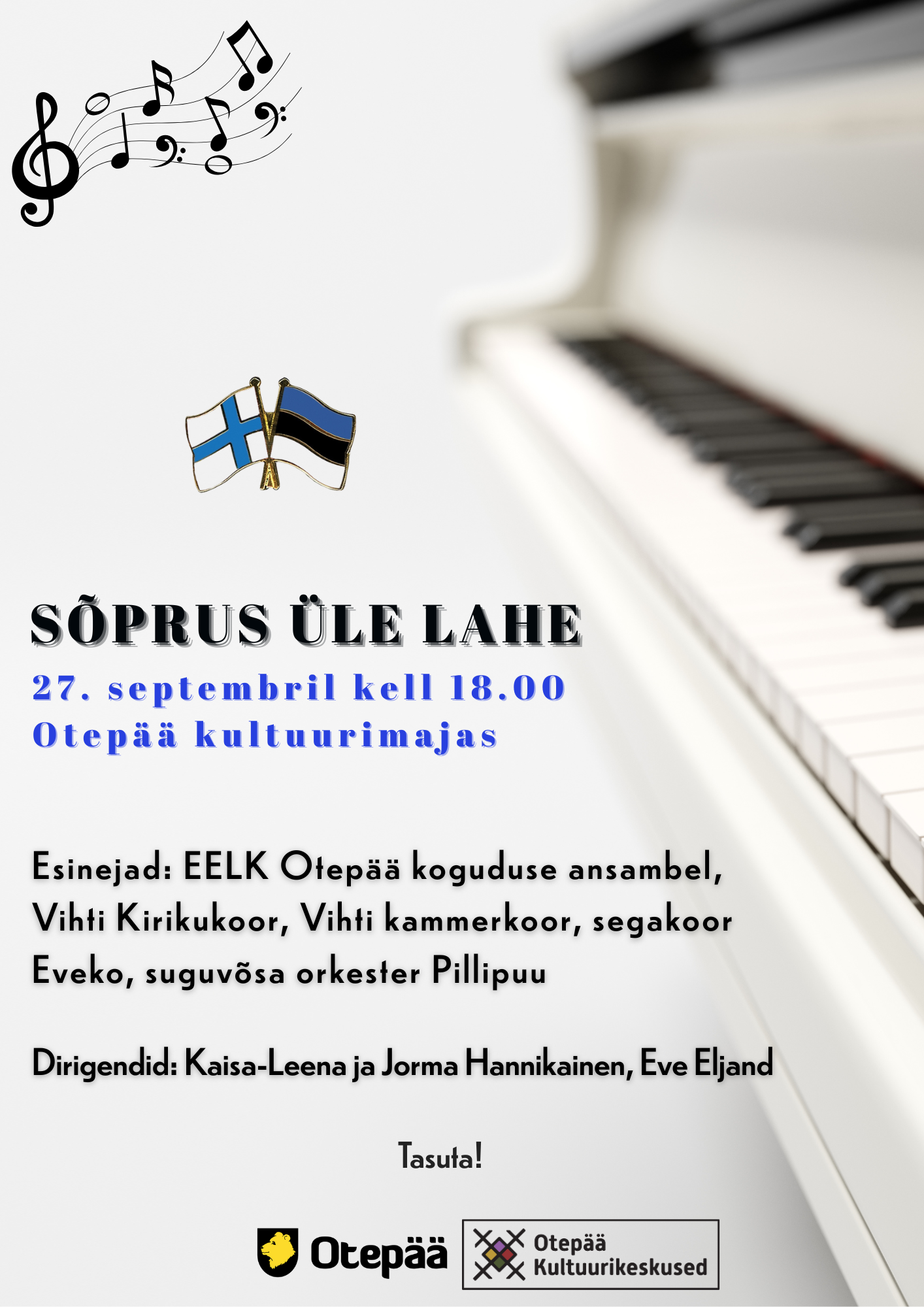 Kutsume teid Otepää ja Vihti sõpruskontserdile, mis põimib endas kokku kahe sõprusomavalitsuse läbi laulu ja mängu.