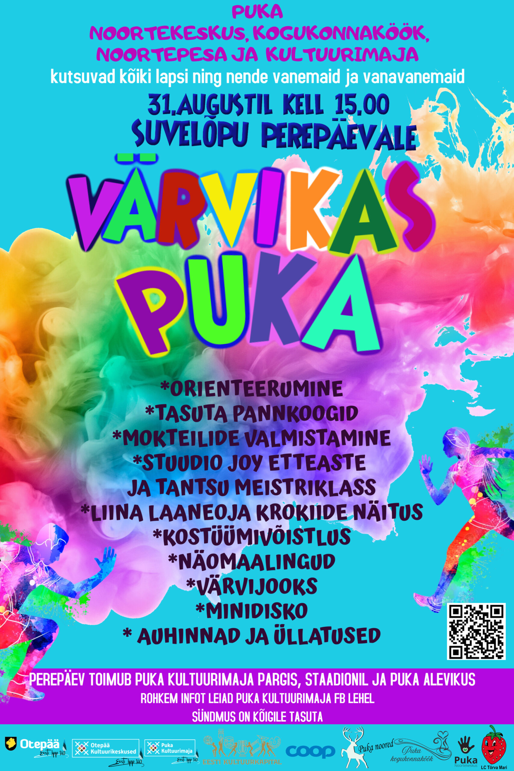 31.08.2024 kell 15.00 Puka kultuurimaja pargis SUVELÕPU PEREPÄEV “VÄRVIKAS PUKA”