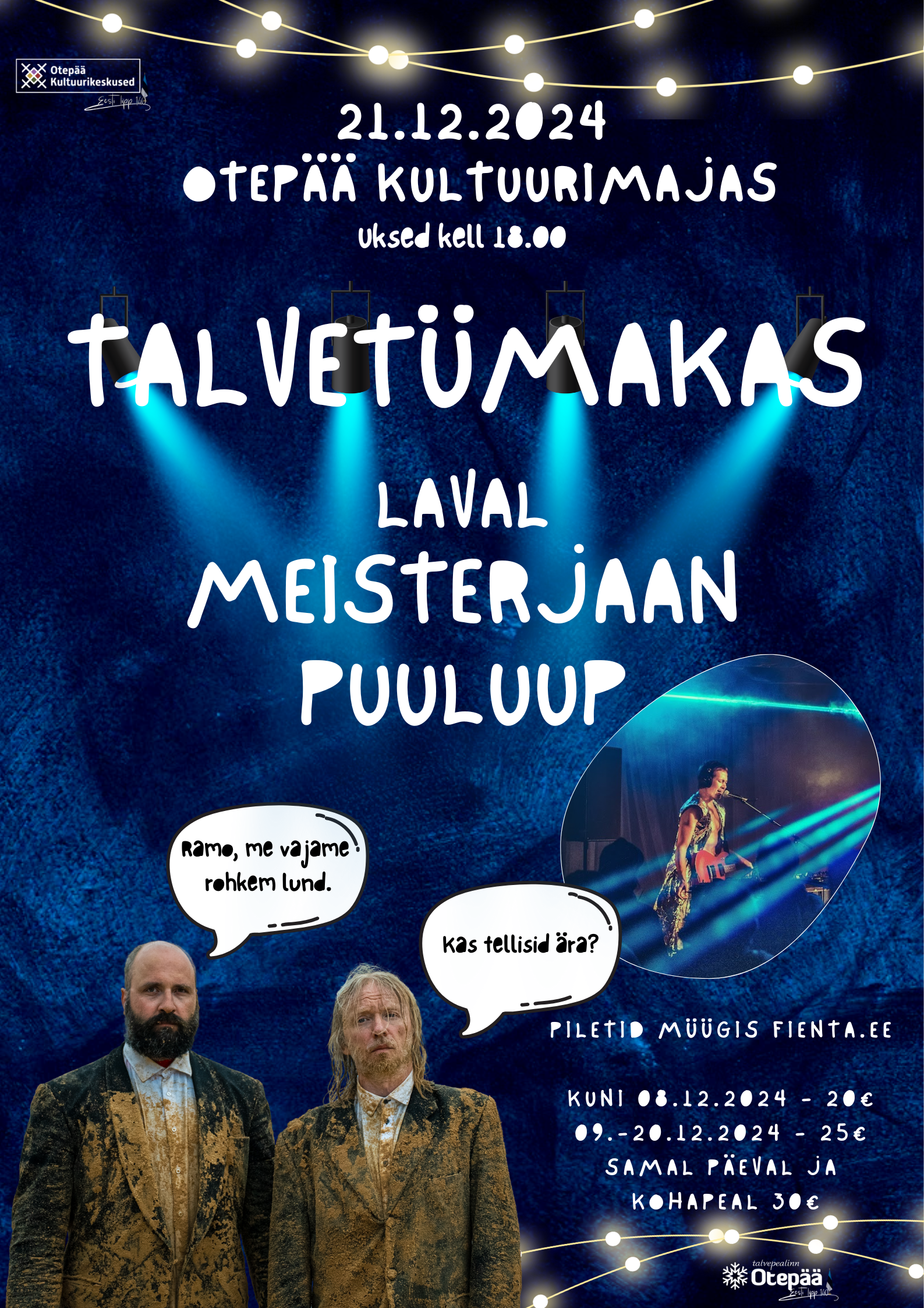 21. detsembril kell 18.00 ootame Sind Otepää kultuurimajas, kus toimub tõsiselt meeleolukas TALVETÜMAKAS.