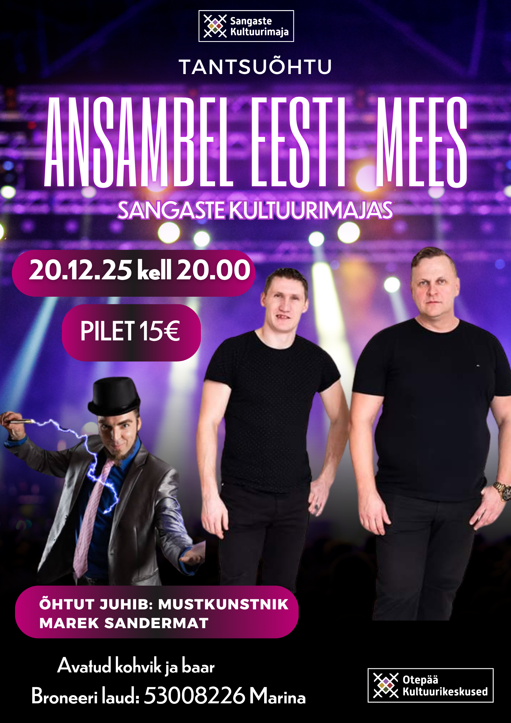 Sangaste kultuurimajas toimub 20. detsembril kell 20.00 tõeline peoõhtu, kus tantsusammud viib käima ansambel EESTI MEES! 🇪🇪